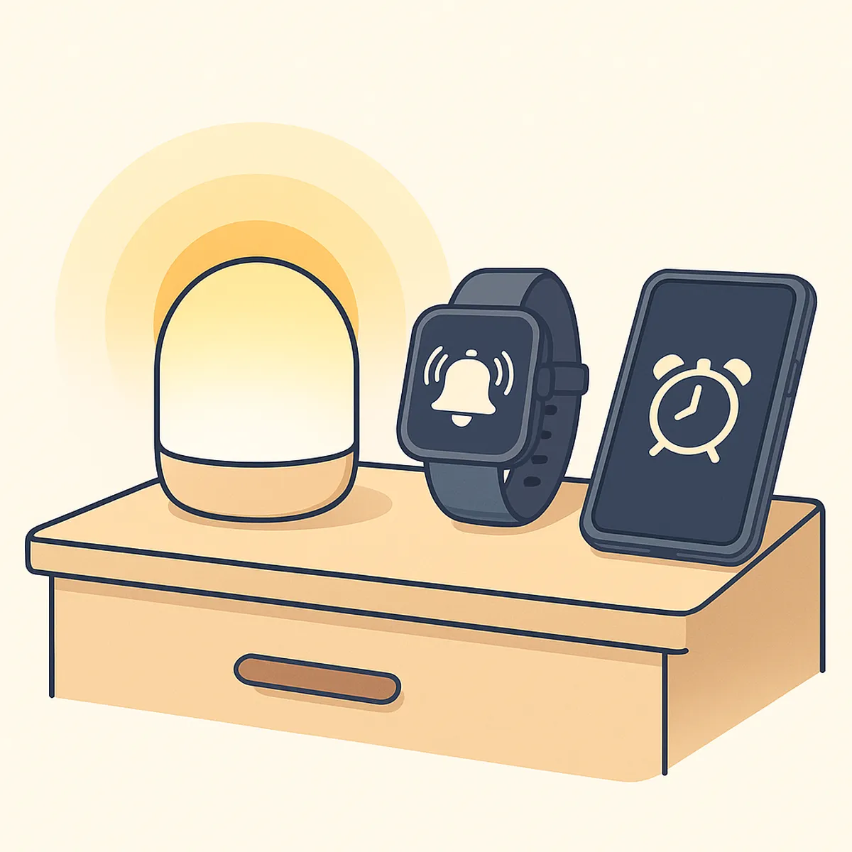 | 소리 알람 | 즉각 각성 ↑ | 각성 유지력 낮음 / 스트레스 호르몬 급증 | 늦잠 위험 높은 사람 |